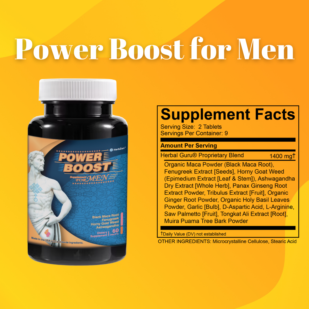 Herbal Guru Proprietary Blend: Organic Maca Powder (Black Maca Root), Fenugreek Extract [Seeds], Horny Goat Weed (Epimedium Extract [Leaf & Stem]), Ashwagandha Dry Extract [Whole Herb], Panax Ginseng Root Extract Powder, Tribulus Extract [Fruit], Organic Ginger Root Powder, Organic Holy Basil Leaves Powder, Garlic [Bulb], D-Aspartic Acid, L-Arginine, Saw Palmetto [Fruit], Tongkat Ali Extract [Root], Muira Puama Tree Bark Powder